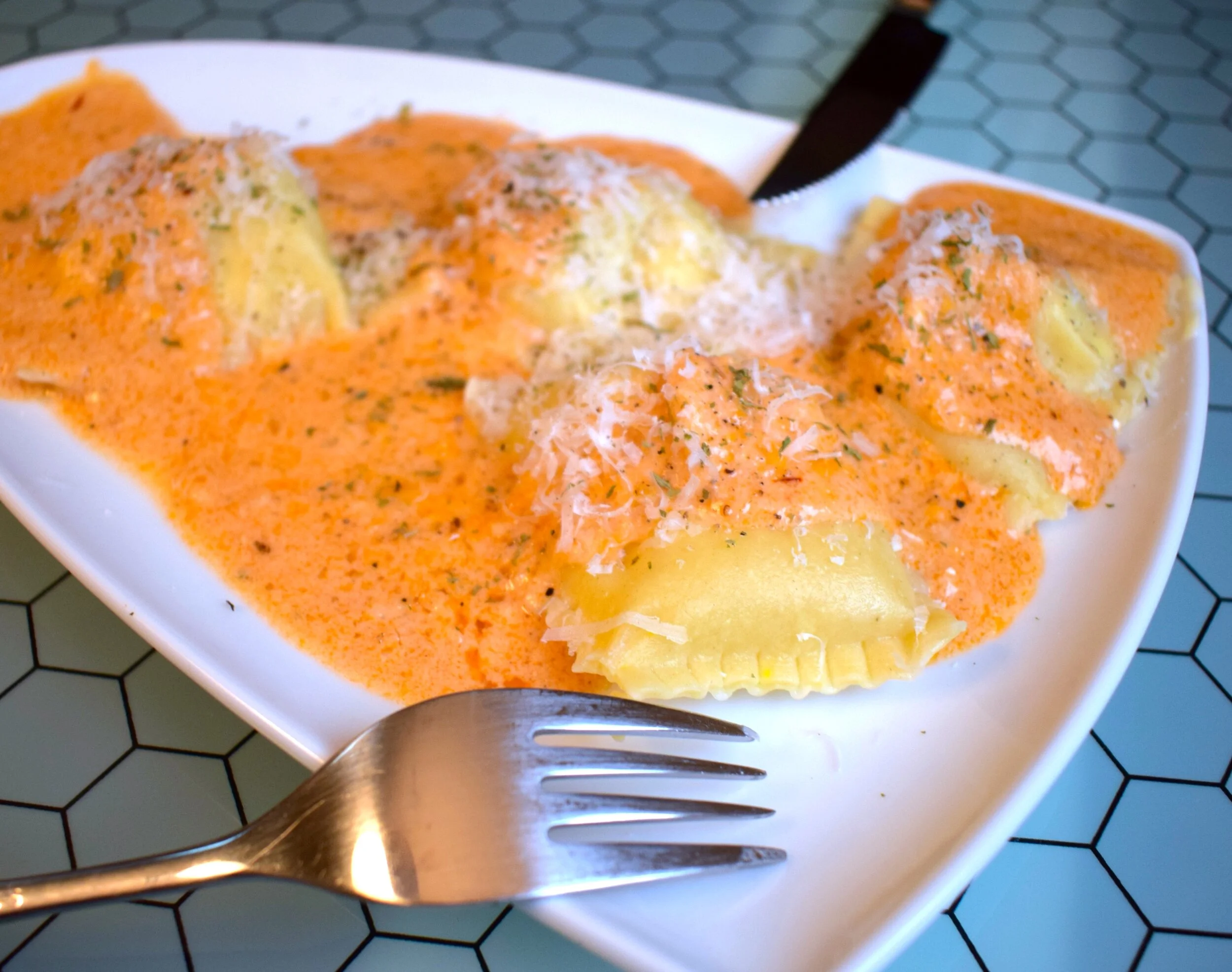Fresh Ravioli Stuffed with Spinach and Ricotta, Creamy Tomato Rosé