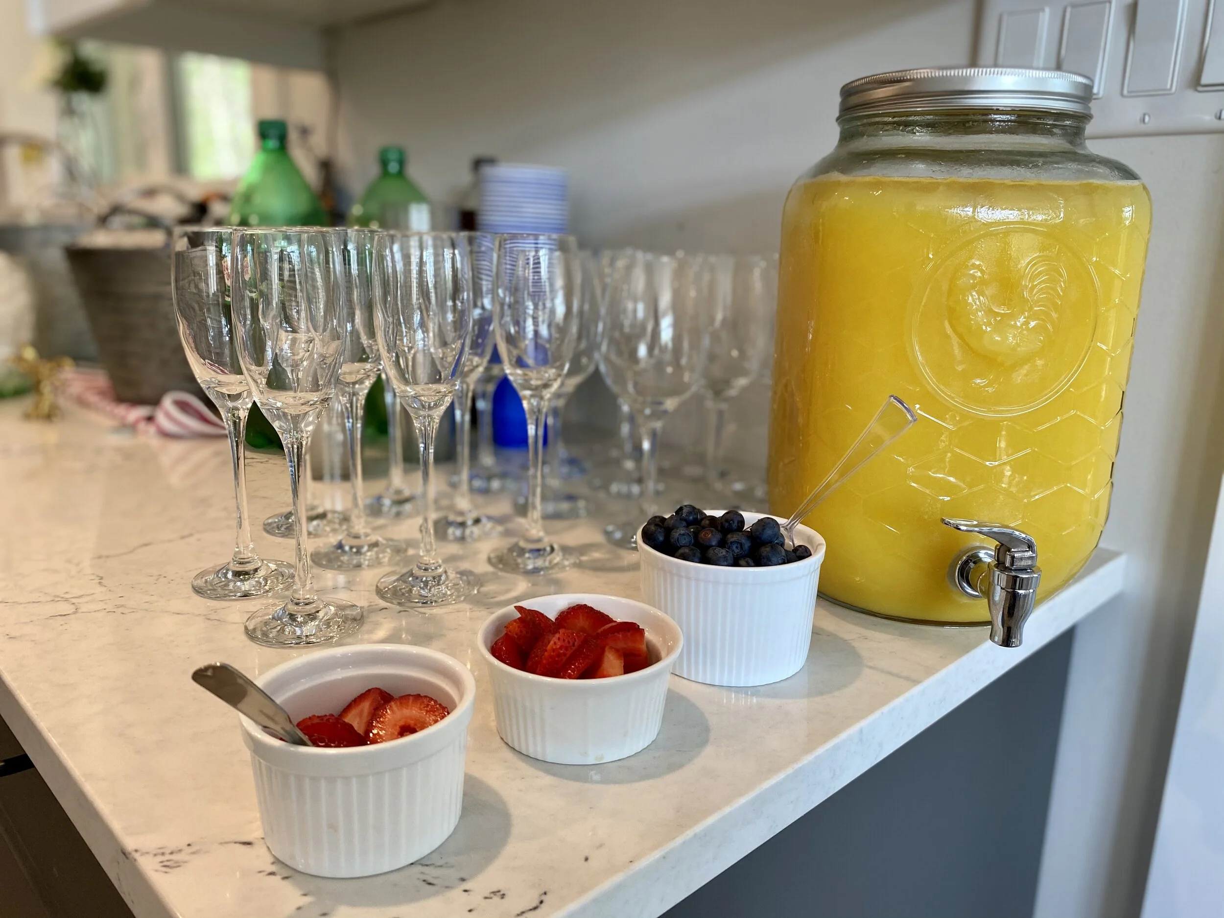 Freshly squeezed orange juice with bubbly sparkling wine and fresh local berries. Mimosa Bar!